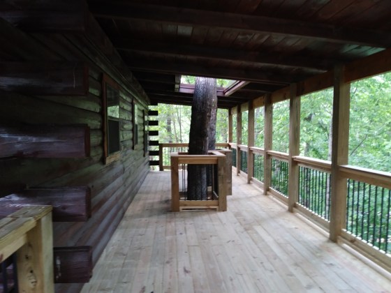 This deck is on the back of a log cabin in walland tennessee.